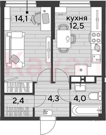 Квартира в ЖК «Dogma park (Догма парк)» (DOGMA. Краснодар) литер 16 очередь 2, Кирпично-монолитный, 1 к.кв., 37.3 кв.м., 11/16, высота потолков: 2.72 м, жилая площадь: 14.1 кв.м., возможна ипотека, возможна военная ипотека, площадь кухни 12.5 кв.м.,