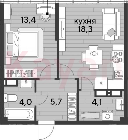 Продажа 1-комн. квартиры, 45.5 кв.м
