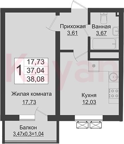 Квартира в ЖК «Зелёный театр» (Европея) литер 1 очередь 1, Кирпично-монолитный, 1 к.кв., 37.04 кв.м., 8/16, высота потолков: 2.73 м, жилая площадь: 17.73 кв.м., возможна ипотека, возможна военная ипотека, площадь кухни 12.03 кв.м.,