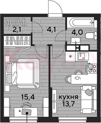 Продажа 1-комн. квартиры, 39.3 кв.м