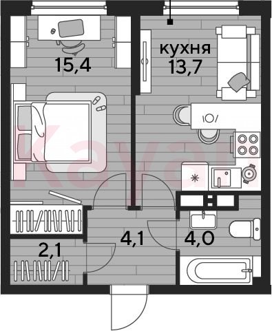 Квартира в ЖК «Dogma park (Догма парк)» (DOGMA. Краснодар) литер 18 очередь 2, Кирпично-монолитный, 1 к.кв., 39.3 кв.м., 11/16, высота потолков: 2.72 м, жилая площадь: 15.4 кв.м., возможна ипотека, возможна военная ипотека, площадь кухни 13.7 кв.м.,