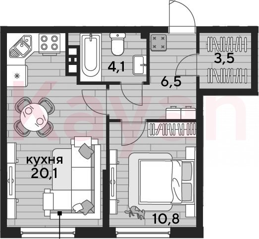 Квартира в ЖК «Dogma park (Догма парк)» (DOGMA. Краснодар) литер 18 очередь 2, Кирпично-монолитный, 1 к.кв., 45 кв.м., 8/16, высота потолков: 2.72 м, жилая площадь: 10.8 кв.м., возможна ипотека, возможна военная ипотека, площадь кухни 20.1 кв.м.,