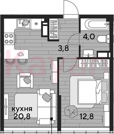 Квартира в ЖК «Dogma park (Догма парк)» (DOGMA. Краснодар) литер 18 очередь 2, Кирпично-монолитный, 1 к.кв., 41.4 кв.м., 15/16, высота потолков: 3.02 м, жилая площадь: 12.8 кв.м., возможна ипотека, возможна военная ипотека, площадь кухни 20.8 кв.м.,