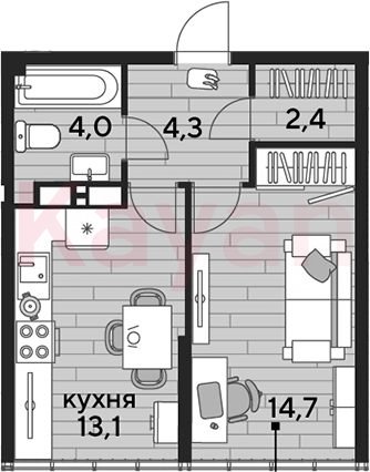 Квартира в ЖК «Dogma park (Догма парк)» (DOGMA. Краснодар) литер 18 очередь 2, Кирпично-монолитный, 1 к.кв., 38.5 кв.м., 16/16, высота потолков: 3.02 м, жилая площадь: 14.7 кв.м., возможна ипотека, возможна военная ипотека, площадь кухни 13.1 кв.м.,