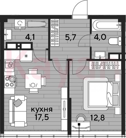 Продажа 1-комн. квартиры, 44.1 кв.м