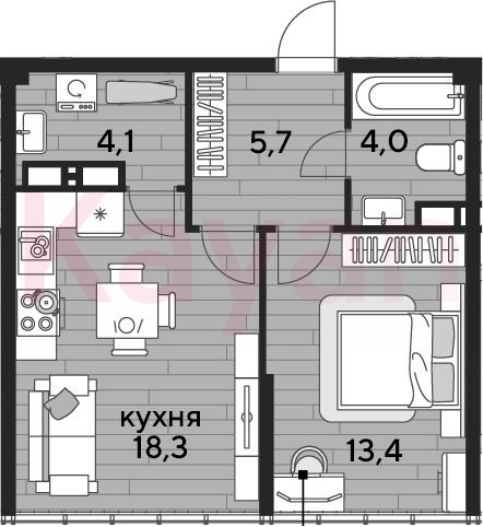 Продажа 1-комн. квартиры, 45.5 кв.м