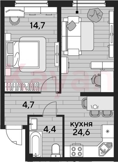 Продажа 1-комн. квартиры, 48.4 кв.м