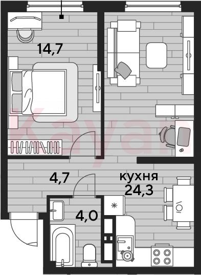 Продажа 1-комн. квартиры, 47.7 кв.м