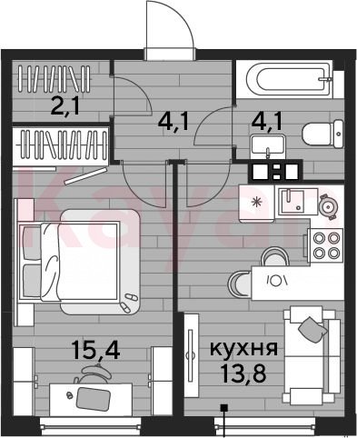 Квартира в ЖК «Dogma park (Догма парк)» (DOGMA. Краснодар) литер 20 очередь 2, Кирпично-монолитный, 1 к.кв., 39.5 кв.м., 6/19, высота потолков: 2.72 м, жилая площадь: 15.4 кв.м., возможна ипотека, возможна военная ипотека, площадь кухни 13.8 кв.м.,