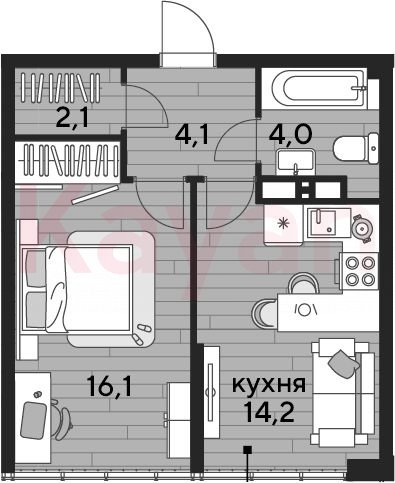 Квартира в ЖК «Dogma park (Догма парк)» (DOGMA. Краснодар) литер 20 очередь 2, Кирпично-монолитный, 1 к.кв., 40.5 кв.м., 19/19, высота потолков: 3.02 м, жилая площадь: 16.1 кв.м., возможна ипотека, возможна военная ипотека, площадь кухни 14.2 кв.м.,