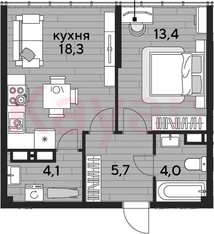 Продажа 1-комн. квартиры, 45.5 кв.м