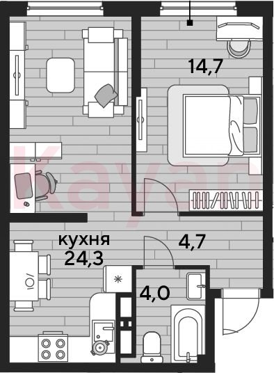 Квартира в ЖК «Dogma park (Догма парк)» (DOGMA. Краснодар) литер 23 очередь 2, Кирпично-монолитный, 1 к.кв., 47.7 кв.м., 14/16, высота потолков: 2.72 м, жилая площадь: 14.7 кв.м., возможна ипотека, возможна военная ипотека, площадь кухни 24.3 кв.м.,