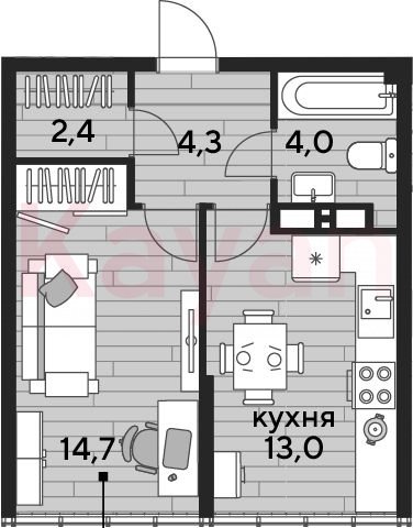 Продажа 1-комн. квартиры, 38.4 кв.м