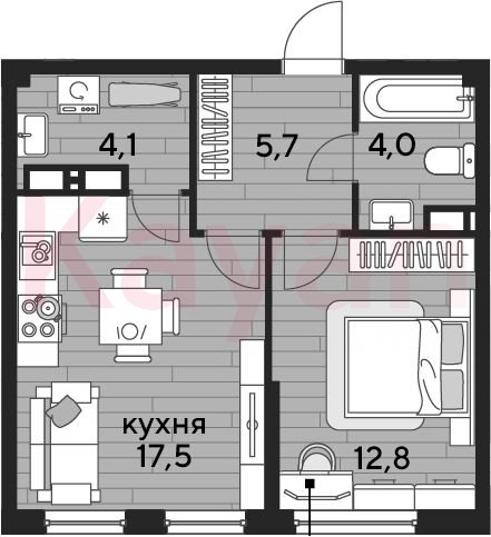 Квартира в ЖК «Dogma park (Догма парк)» (DOGMA. Краснодар) литер 22 очередь 2, Кирпично-монолитный, 1 к.кв., 44.1 кв.м., 11/16, высота потолков: 2.72 м, жилая площадь: 12.8 кв.м., возможна ипотека, возможна военная ипотека, площадь кухни 17.5 кв.м.,