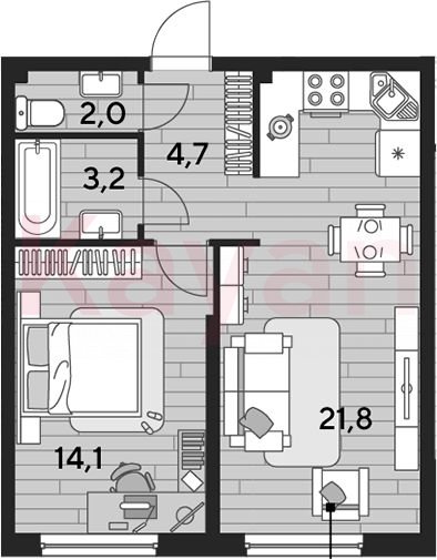 Продажа 1-комн. квартиры, 45.8 кв.м