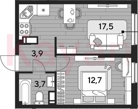 Квартира в ЖК «Dogma park (Догма парк)» (DOGMA. Краснодар) литер 22 очередь 2, Кирпично-монолитный, 1 к.кв., 37.8 кв.м., 11/16, высота потолков: 2.72 м, жилая площадь: 12.7 кв.м., возможна ипотека, возможна военная ипотека, площадь кухни 17.5 кв.м.,
