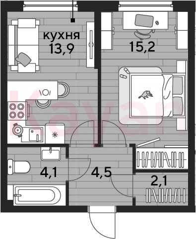 Квартира в ЖК «Dogma park (Догма парк)» (DOGMA. Краснодар) литер 24 очередь 2, Кирпично-монолитный, 1 к.кв., 39.8 кв.м., 2/16, высота потолков: 2.72 м, жилая площадь: 15.2 кв.м., возможна ипотека, возможна военная ипотека, площадь кухни 13.9 кв.м.,