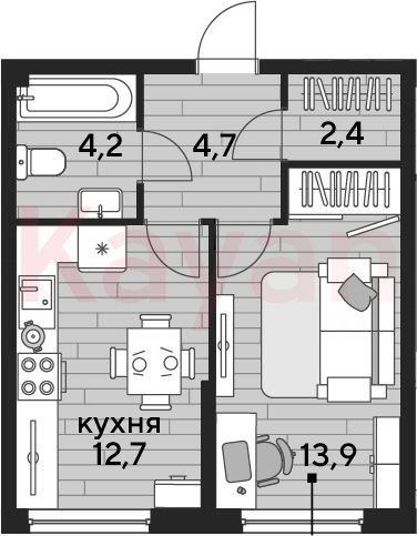 Квартира в ЖК «Dogma park (Догма парк)» (DOGMA. Краснодар) литер 24 очередь 2, Кирпично-монолитный, 1 к.кв., 37.9 кв.м., 2/16, высота потолков: 2.72 м, жилая площадь: 13.9 кв.м., возможна ипотека, возможна военная ипотека, площадь кухни 12.7 кв.м.,
