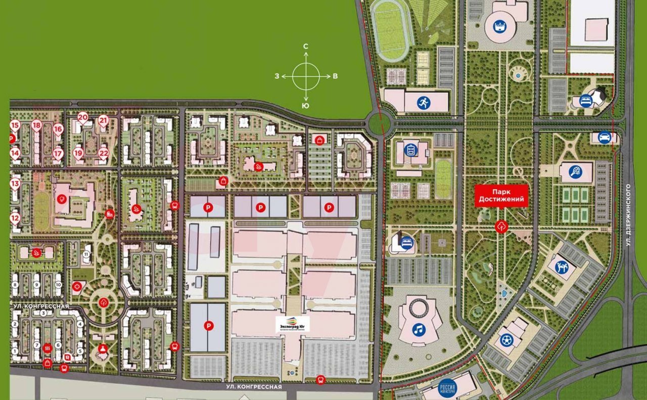 На территории комплекса находится 3 собственных детских сада, школа на 1875 мест и православный храм. Во дворах расположились детские и спортивные площадки, воркаут зоны, роллердром, скейтпарк. На территории выполнен ландшафтный дизайн, спроектирована аллея современного искусства, прогулочные дорожки с лавочками, беседка и фонтан. Для владельцев автомобилей предусмотрен паркинг.