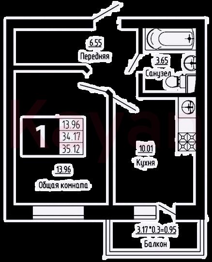 Продажа 1-комн. квартиры, 34.17 кв.м