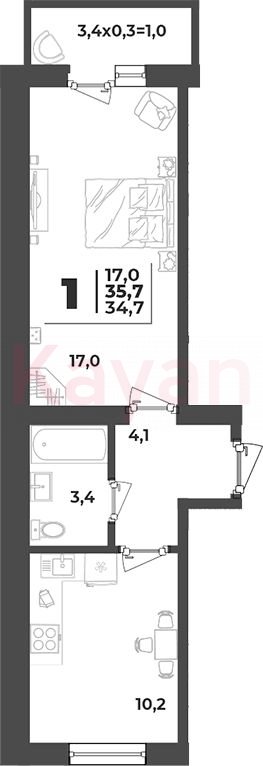 Продажа 1-комн. квартиры, 34.7 кв.м