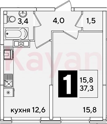 Продажа 1-комн. квартиры, 37.3 кв.м