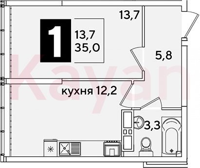 Продажа 1-комн. квартиры, 35 кв.м