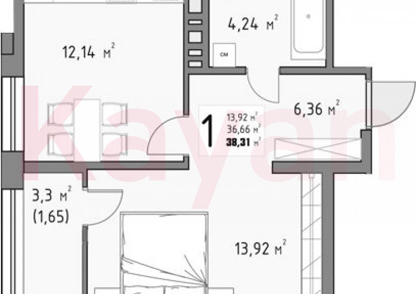 Продажа 1-комн. квартиры, 38.3 кв.м