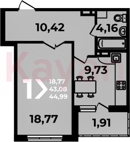 Продажа 1-комн. квартиры, 43.08 кв.м