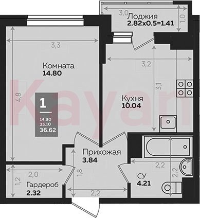 Продажа 1-комн. квартиры, 35.21 кв.м