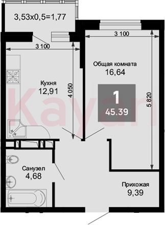 Продажа 1-комн. квартиры, 44.09 кв.м