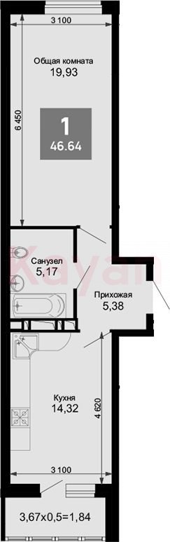 Продажа 1-комн. квартиры, 45.27 кв.м