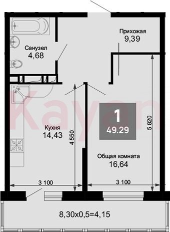Продажа 1-комн. квартиры, 45.14 кв.м