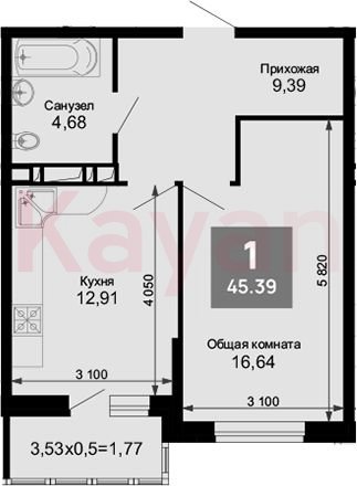 Продажа 1-комн. квартиры, 43.62 кв.м