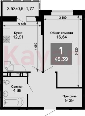 Квартира в ЖК «Лучший» (ССК. Краснодарский край) литер 10 очередь 4, Кирпично-монолитный, 1 к.кв., 43.62 кв.м., 15/15, высота потолков: 2.7 м, жилая площадь: 16.64 кв.м., возможна ипотека, площадь кухни 12.91 кв.м.,