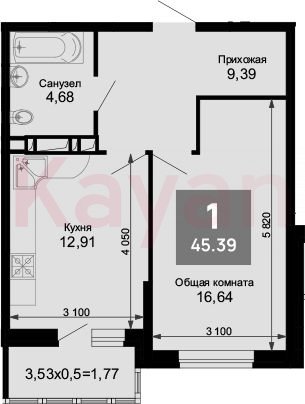 Продажа 1-комн. квартиры, 43.62 кв.м