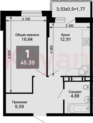 Продажа 1-комн. квартиры, 44.11 кв.м