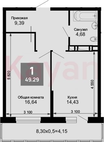 Продажа 1-комн. квартиры, 45.14 кв.м