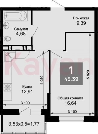 Продажа 1-комн. квартиры, 43.62 кв.м