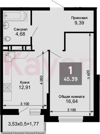 Продажа 1-комн. квартиры, 44.09 кв.м