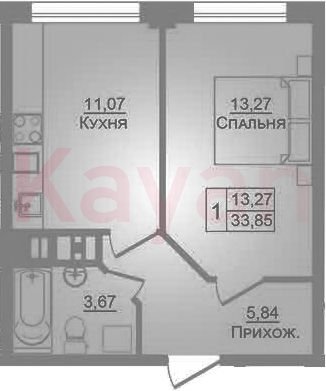 Квартира в ЖК «Портрет» (ART Group) литер 1 очередь 1, Кирпично-монолитный, 1 к.кв., 33.9 кв.м., 2/9, высота потолков: 2.7 м, жилая площадь: 13.27 кв.м., возможна ипотека, возможна военная ипотека, площадь кухни 11.07 кв.м.,