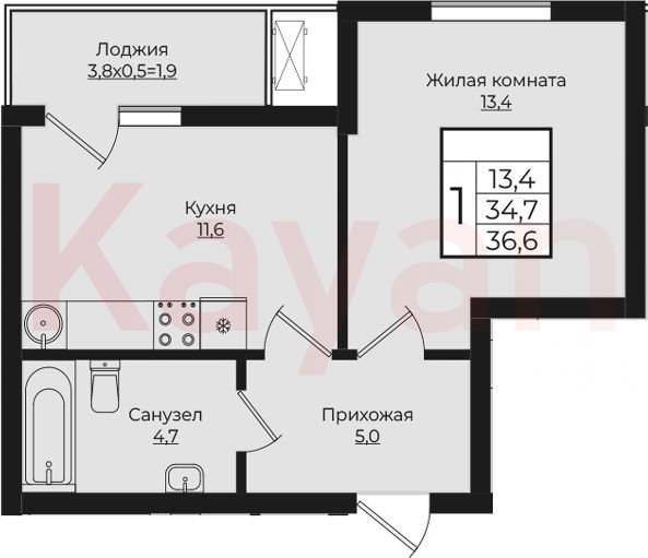 Продажа 1-комн. квартиры, 34.7 кв.м