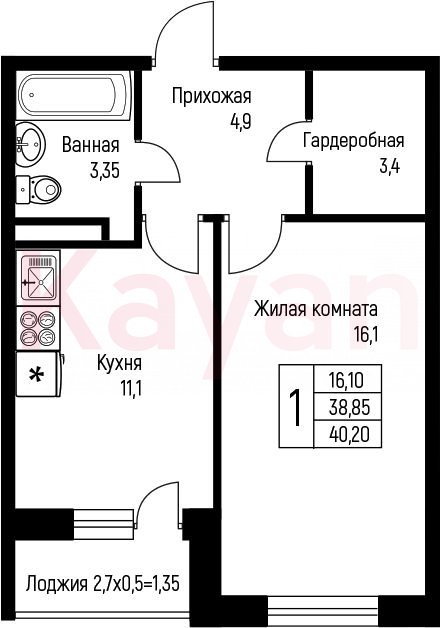 Продажа 1-комн. квартиры, 38.85 кв.м