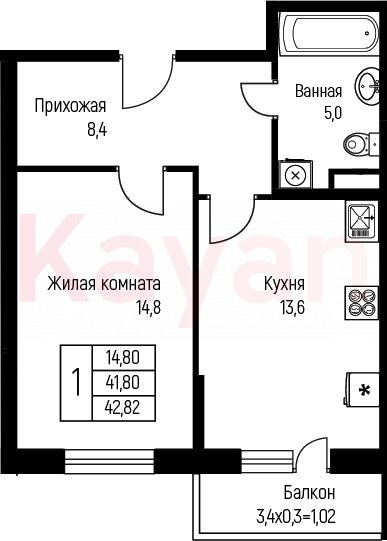 Продажа 1-комн. квартиры, 41.8 кв.м