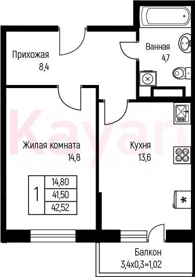 Продажа 1-комн. квартиры, 41.5 кв.м