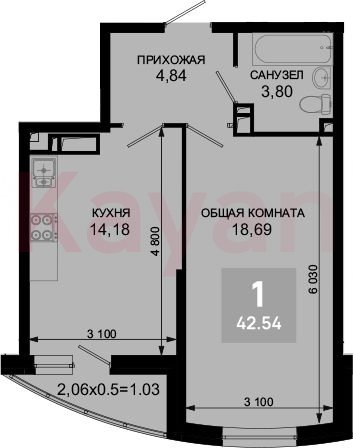 Квартира в ЖК «Лучший» (ССК. Краснодарский край) литер 13 очередь 5, Кирпично-монолитный, 1 к.кв., 41.51 кв.м., 19/19, высота потолков: 2.7 м, жилая площадь: 18.69 кв.м., возможна ипотека, площадь кухни 14.18 кв.м.,