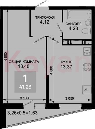 Квартира в ЖК «Лучший» (ССК. Краснодарский край) литер 12 очередь 5, Кирпично-монолитный, 1 к.кв., 40.2 кв.м., 19/19, высота потолков: 2.7 м, жилая площадь: 18.48 кв.м., возможна ипотека, площадь кухни 13.37 кв.м.,