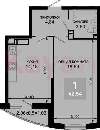 Квартира в ЖК «Лучший» (ССК. Краснодарский край) литер 12 очередь 5, Кирпично-монолитный, 1 к.кв., 41.51 кв.м., 17/19, высота потолков: 2.7 м, жилая площадь: 18.69 кв.м., возможна ипотека, площадь кухни 14.18 кв.м.,