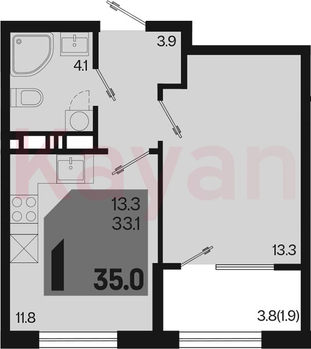 Квартира в ЖК «Первое место» (ГК Точно. Краснодарский край) литер 1.10 Л1 очередь 1, Монолитный, 1 к.кв., 33.1 кв.м., 8/9, высота потолков: 2.66 м, жилая площадь: 13.3 кв.м., возможна ипотека, возможна военная ипотека, площадь кухни 11.8 кв.м.,