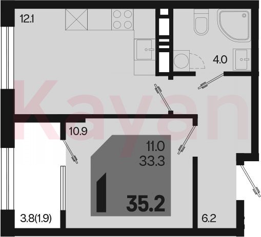 Продажа 1-комн. квартиры, 33.2 кв.м
